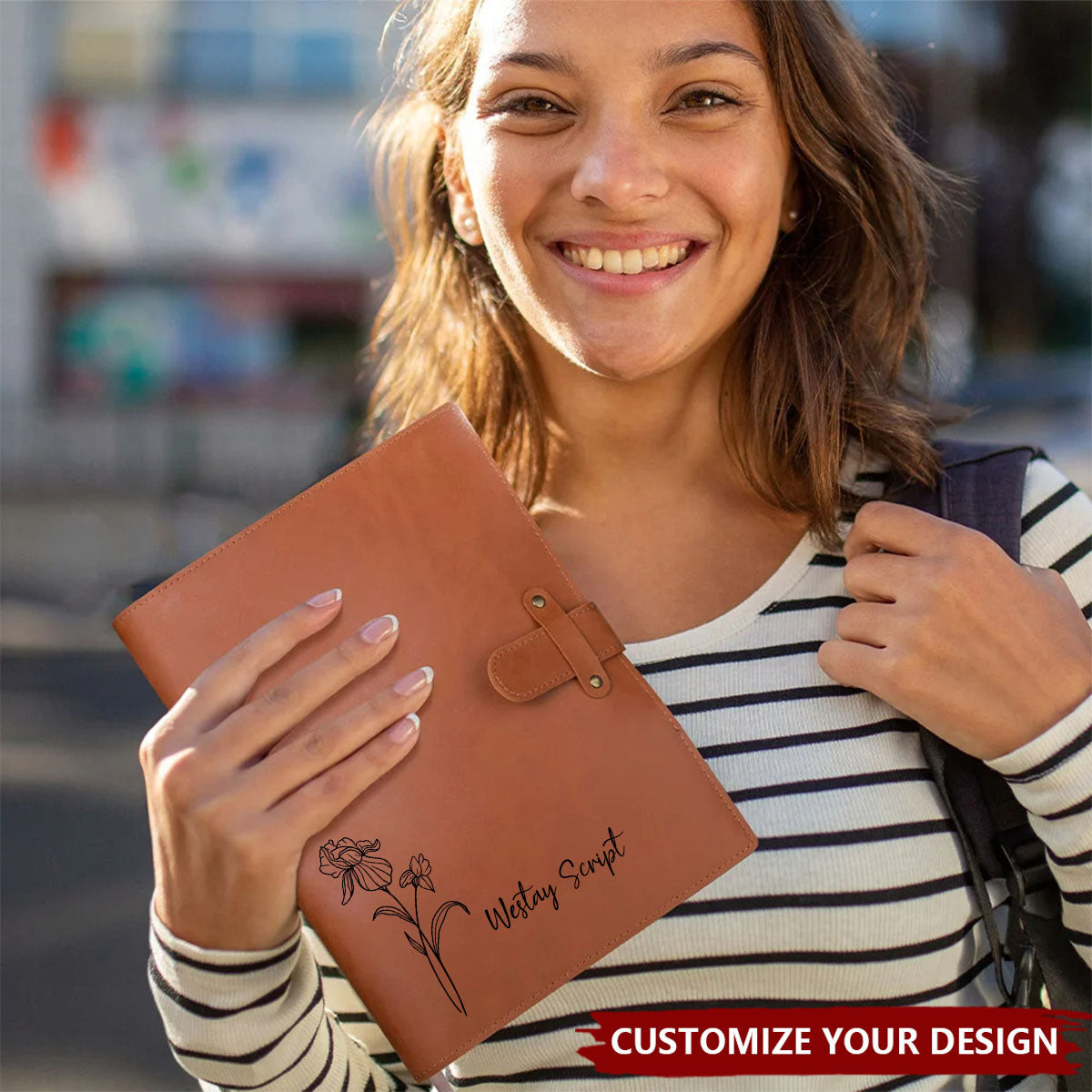 Personalized Birth Flower PU Leather Book Cover Notebook with Engraved Name Birthday Gift for Her and Art Lover